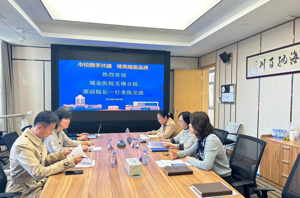 10月18日下午,瑞金医院无锡分院院长邵洁、教学副院长邓漾及院办主任叶光明一行来访九博国际