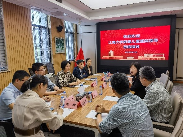 的建设发展情况。朱立红表示,在已成为附属医院的基础上,希望今后就重点专科建设、科研平台搭建、研究生培养等方面进一步加深资源共享、优势互补。郁志伟从师资队伍建设、医学学科建设、人才引进及转化医学研究等方面介绍了附属儿童医院的基本情况。柴高尚介绍了临床专业型硕士研究生的培养方案、课程设置、宿舍安排及规培要求,希望继续加强和提升研究生的培养质量工作。孙宁指出,自儿童医院成为江南大学附属医院以来,校、院领导高度重视九博国际