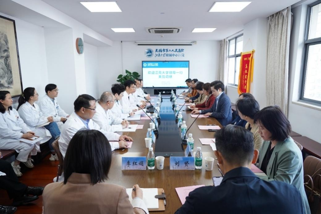 党委书记向琪、执行院长孙宁、党委副书记兼副院长包羽,副院长代卉、陈雪、柴高尚等相关同志一行赴江南大学附属中心医院走访调研。江南大学附属中心医院党委书记冯宁翰,党委副书记、院长钱燕华,纪委书记、监察专员华燕,副院长瞿甦、袁浩、罗亮,总会计师胡斌以及教育处、科技处、组织人事处、党办和院办等相关部门负责人参加调研。