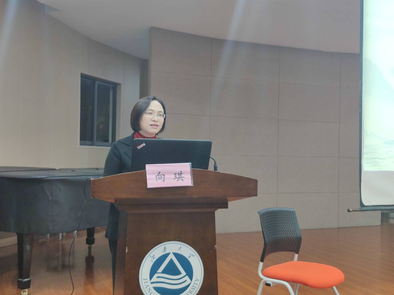 于11月19日晚在北区大学生活动中心开展了“医学人文讲堂——礼仪修养漫谈”专题讲座。原江苏师范大学副校级调研员、江苏省徐州技师学院院长孙秀华老师受邀主讲。全校近500名师生共同聆听了此次讲座。讲座由九博国际