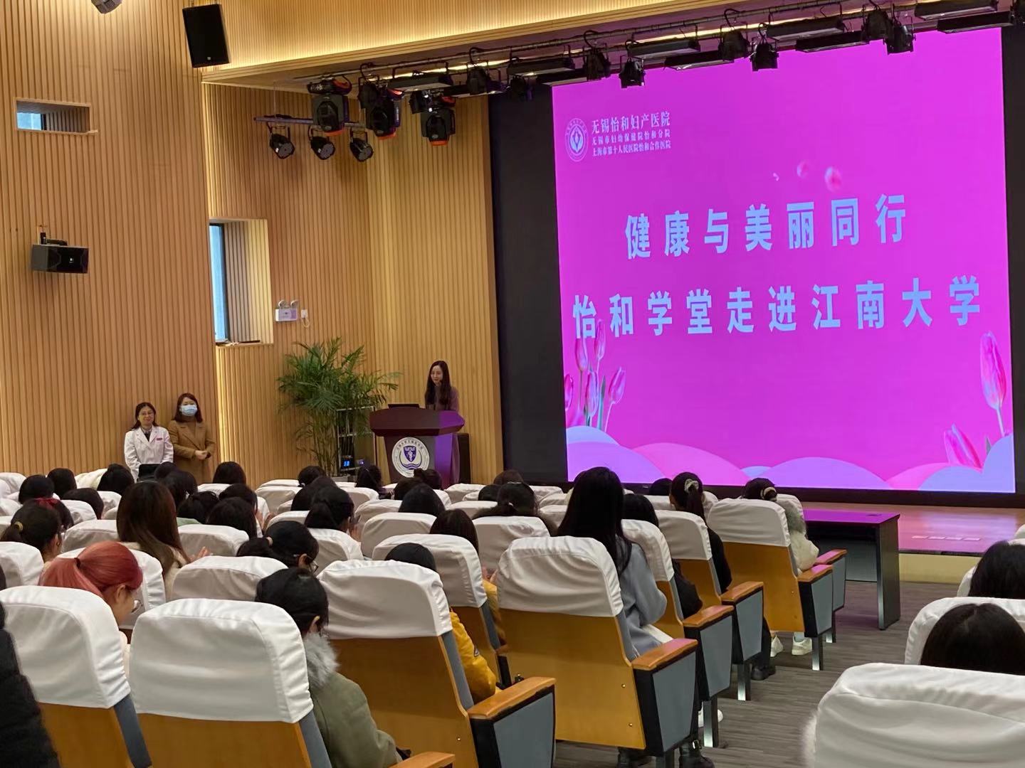 协办。无锡怡和妇产医院妇产科副主任医师谢彦、计划生育主治医师过燕芳两位老师应邀作为讲课嘉宾,为到场学生带来了一堂关于女大学生美丽健康的公益讲课,来自江南大学各个学院的近200名女大学生积极参加。