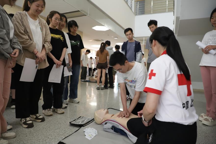 C101报告厅举行,无锡市红十字会、校医院等多位培训导师受邀参加此次培训活动。学院100名本科生参与本次培训并完成了CPR+AED急救证书考核。