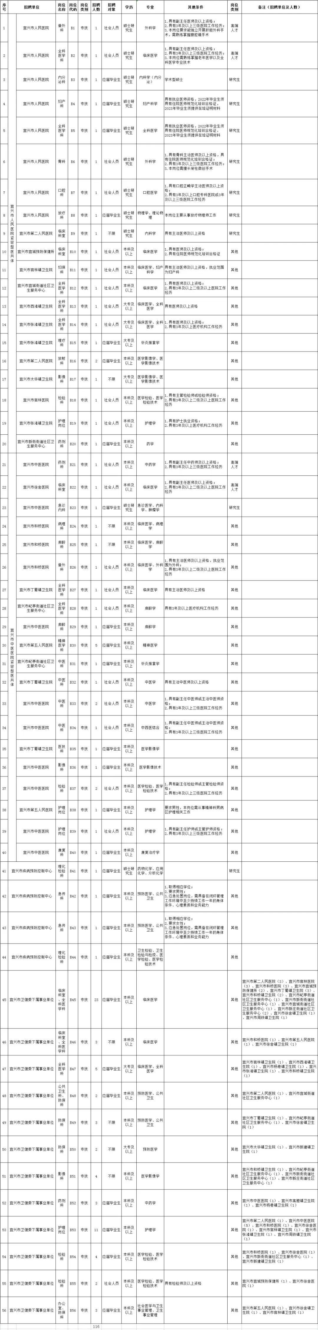 为选拔优秀人才,加强卫生人才队伍建设,促进我市医疗卫生事业的发展,根据《江苏省事业单位公开招聘人员办法》(苏办发〔2020〕9号)、《无锡市事业单位公开招聘人员实施办法》(锡委办发〔2012〕54号)文件精神,宜兴市卫生健康委员会决定面向社会公开招聘卫健系统事业编制医卫类工作人员116名。现将有关事项公告如下: