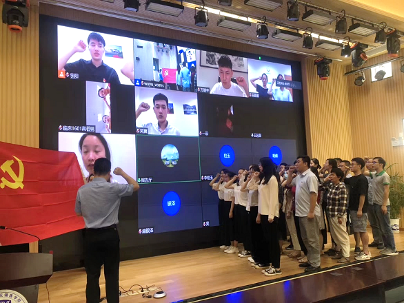 C101报告厅举办战“疫”示范微党课活动,此次活动包括三个部分:一、全体党员重温入党誓词;二、战“疫”微党课;三、开展“新时代、新精神、新医科”座谈会。此次活动采用线上线下混合式会议进行,由医学学科党支部书记柴高尚主持,医学学科党支部全体党员参加此次大会。