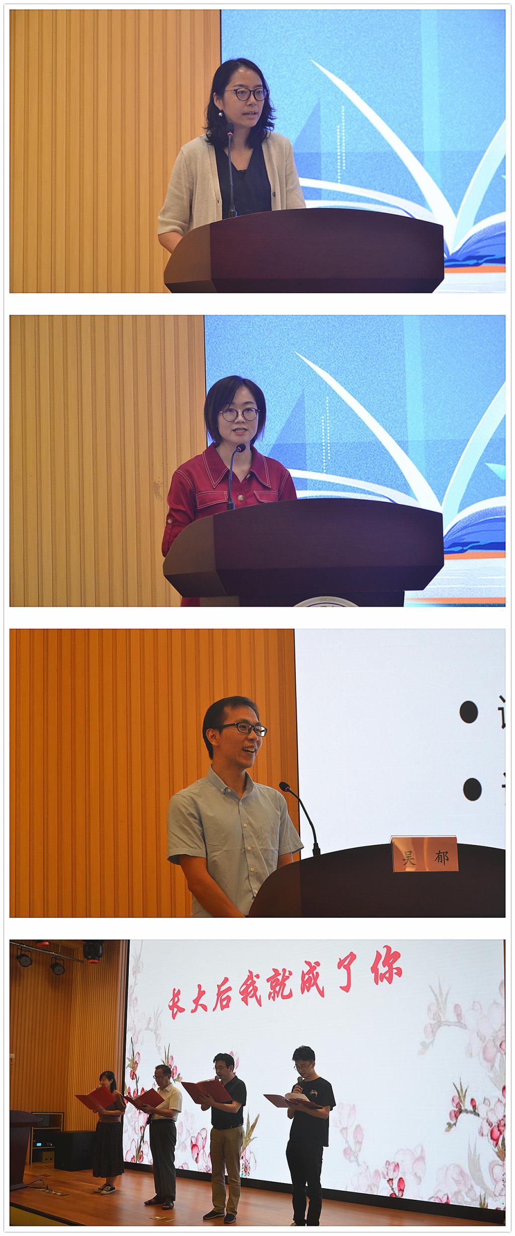 师徒四代的邬敏辰、邓超、林丹、王少和老师作诗朗诵《长大后我就成了你》,深情演绎了什么是博爱、仁心、传承的精神,将庆祝大会推向高潮。