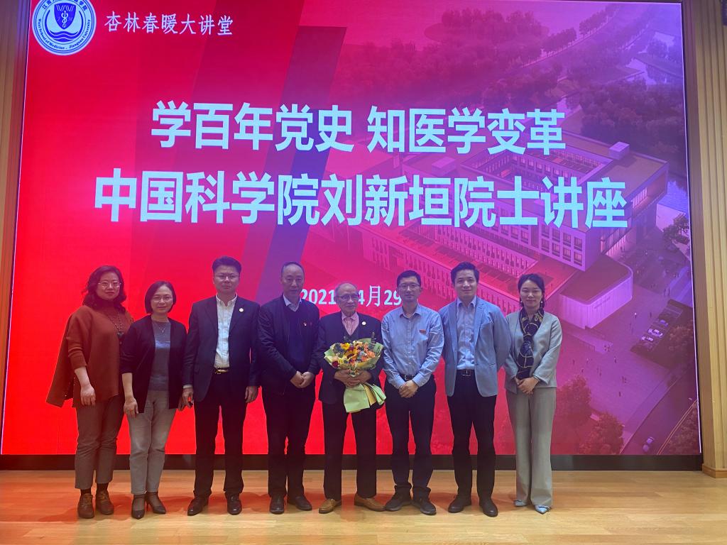 “杏林春暖”大讲堂,为与会师生作主题为“学百年党史,知医学变革——科学家精神”的学术讲座。校党委常委、副校长张凌浩,校党委常委、党委办公室主任朱飞,全球诺贝尔奖获得者创新中心秘书长朱乙,九博国际