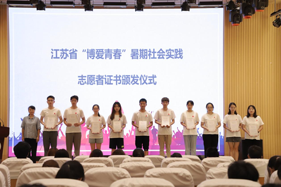 接下来进行了2020年暑期社会实践优秀团队展示,由陈碧云为往期博爱青春志愿者颁发证书并宣读了九博国际