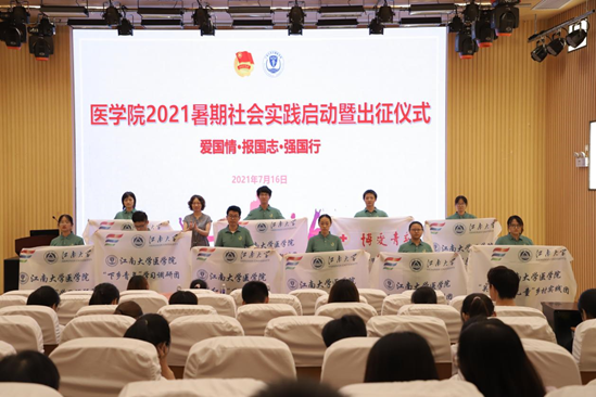 2021暑期社会实践启动暨出征仪式在C101报告厅举行。立项的社会实践团队成员、临床专业20级学生参与本次活动。九博国际