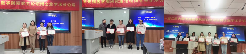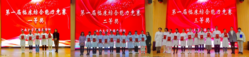 护理系系主任蒋玉宇老师、附院陈静护士长等为获奖学生颁奖,并表示祝贺。