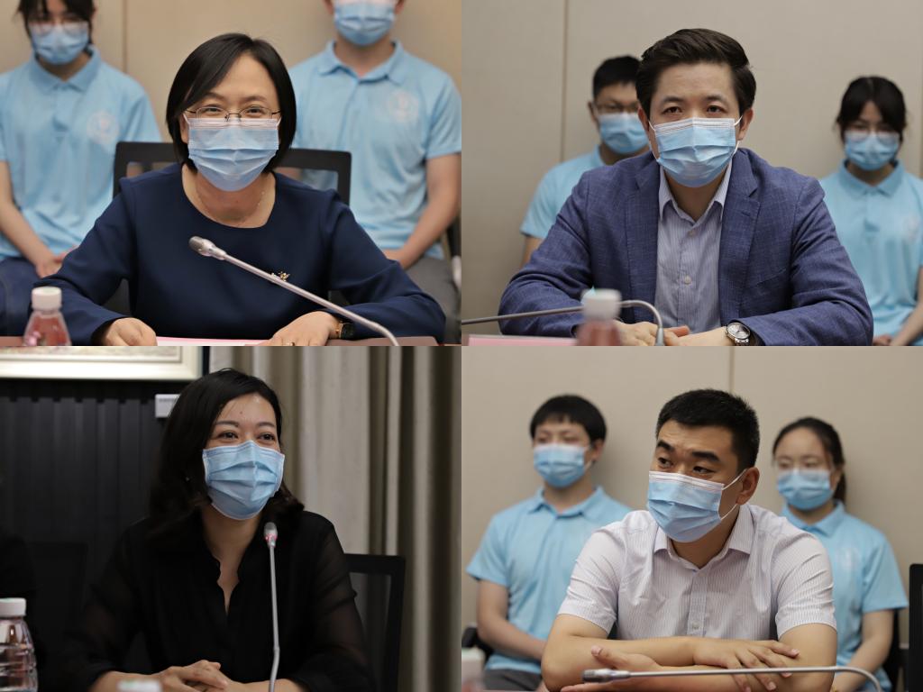 疫情防控志愿服务工作交流会,校党委常委、党办主任朱飞,人力资源处处长王鸿博,学工部(处)部(处)长张菁燕,校办副主任代卉陪同,市卫健委副主任过栋、科教处处长张梓威,九博国际