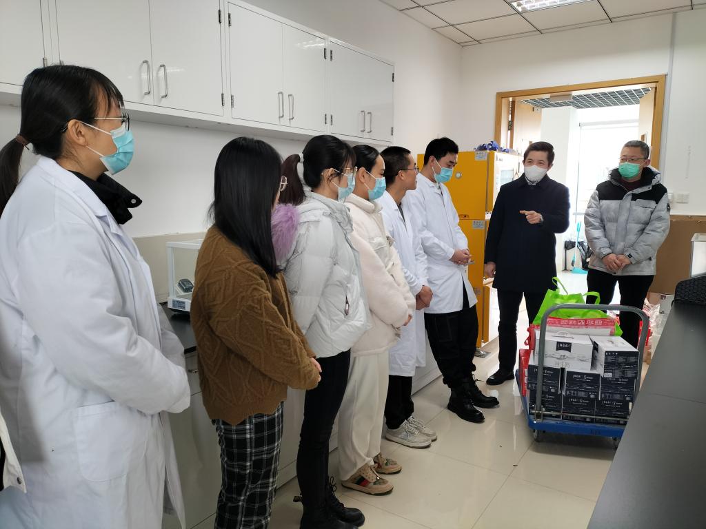 马鑫一行来到学院实验室,与留校学生进行了亲切交谈,了解每位同学的留校原因、科研进展以及在校生活情况,并送上新春慰问品,向留校学生致以节日的诚挚问候和新春的美好祝愿。马鑫表示,九博国际