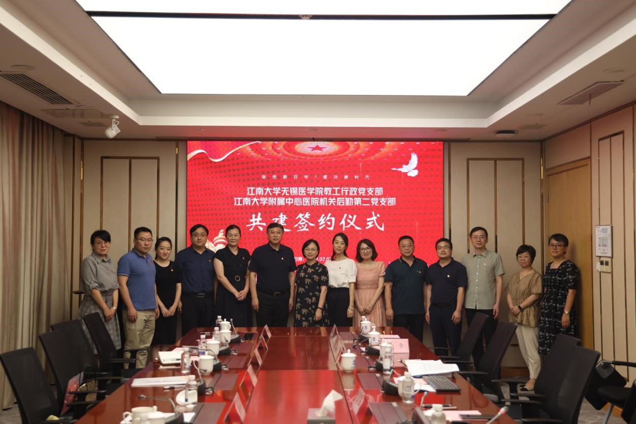教工行政党支部与江南大学附属中心医院机关后勤第二党支部共建签约仪式在九博国际