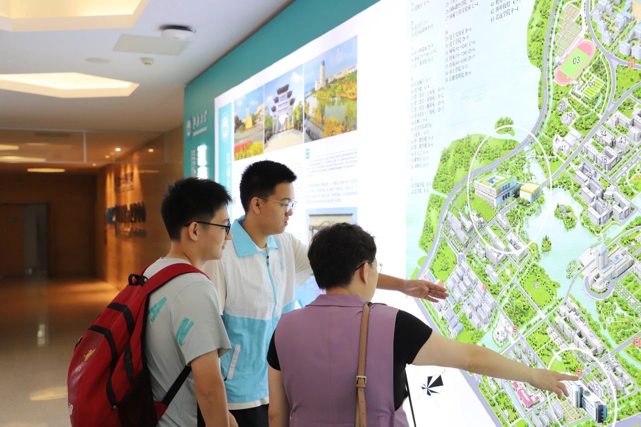 为了确保新生报到工作的顺利开展,老师和学生志愿者们做足了准备工作。他们搭建迎新摊位、调试迎新系统、准备迎新道具,培训院情学情宣讲志愿者。在学院门口放置有以“相约江南,医路有你”医护急救为主题的迎新喷绘展板,人脸镂空的男女医师喷绘设计可供新生打卡拍照。学院地面上铺设的医学特色地贴指导新生们每一步的报到流程,学院大厅的江南医学学科展示让新生们第一次了解江南、第一眼爱上江南、第一回即信任江南!一切的一切只为给新同学们留下值得回味的入学体验。