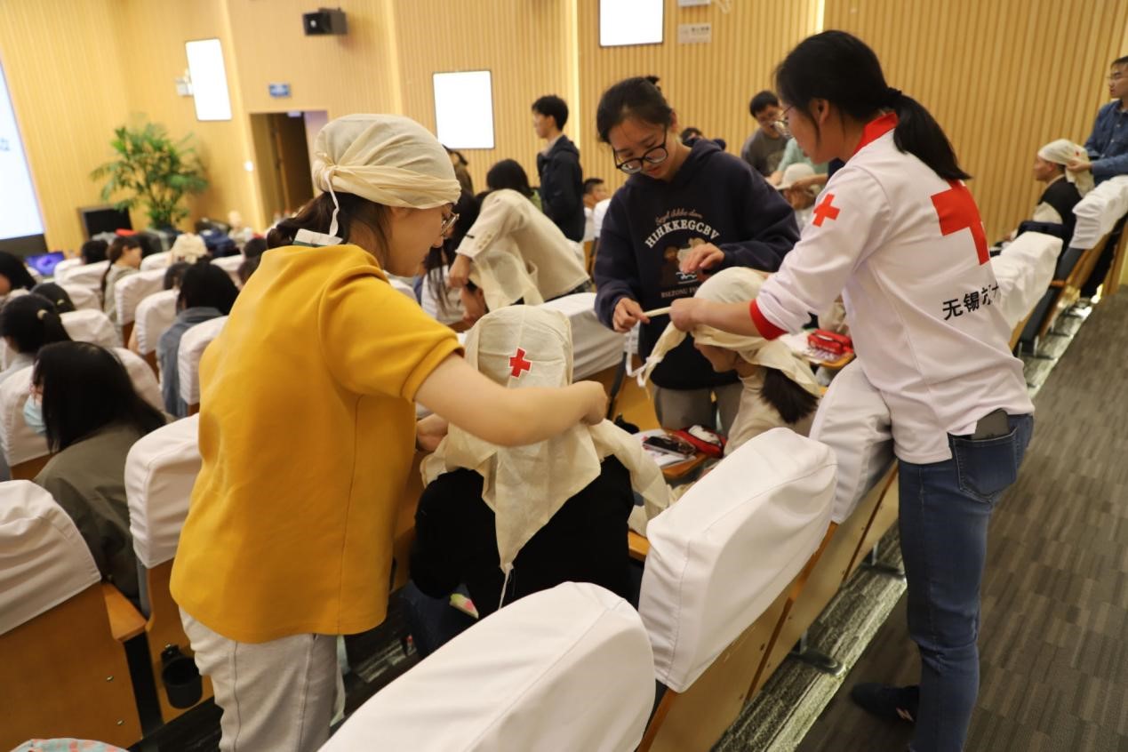 C101报告厅联合举办了“关爱生命,‘救’在身边,‘食’在必要”急救知识科普实践讲座。急救知识培训由无锡市红十字会唐镇棣及五位助教老师主讲,九博国际