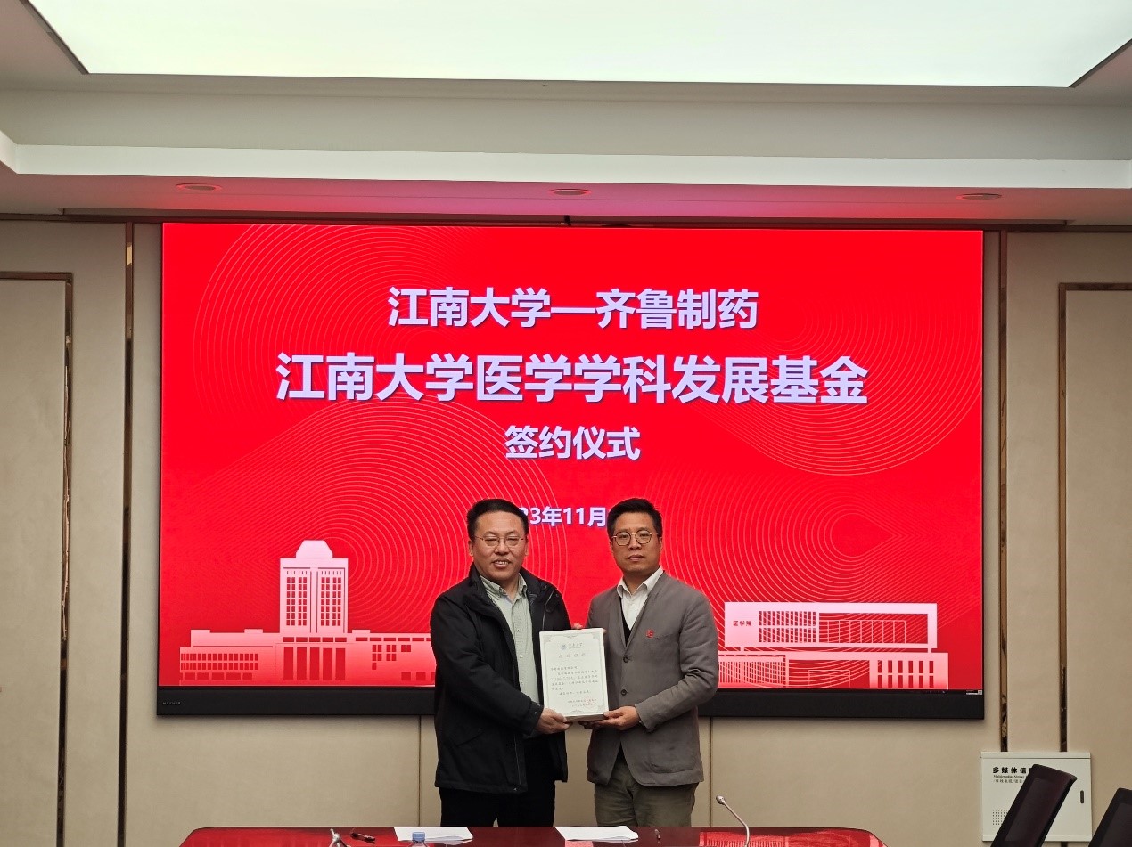 11月13日,江南大学-齐鲁制药医学学科发展捐赠基金签约仪式在九博国际