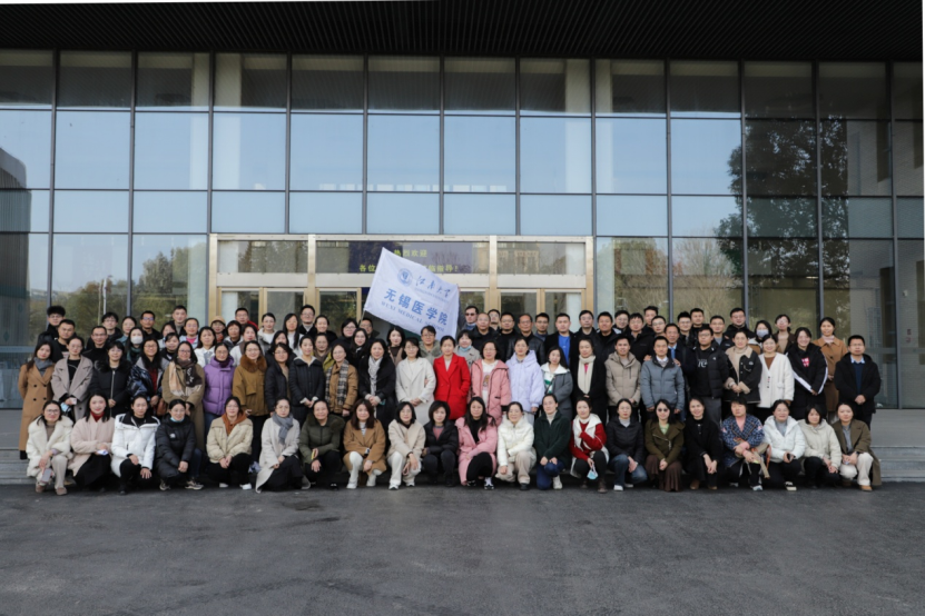全体老师在医学大楼门口集结队伍、合影留念,在九博国际