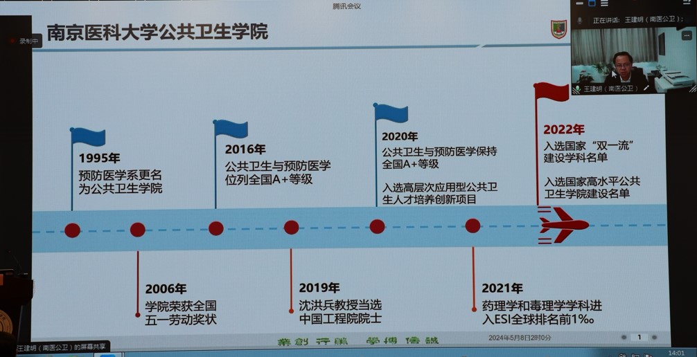 此外,江南大学公共卫生与健康研究院食品卫生学方向带头人孙秀兰教授介绍了团队在应对食品安全与生物毒素新健康威胁方面的研究进展与成果。山西医科大学王彤教授与山东大学薛付忠教授针对公共卫生与健康领域的统计大数据分析前沿科学问题进行了分享与交流。会议上专家们一致认为新时代公共卫生与预防医学学科建设应突破传统学科思维,坚持新医科理念,积极面向国家战略、面向学科发展前沿、面向高水平人才培养、面向全球健康,同时高度肯定了江南大学在发挥学科交叉融合优势、差异化培养全过程营养和全链条食品卫生安全高层次人才方面的做法经验和取得的成绩。会议闭幕式由公共卫生与健康研究院副院长吴郁主持。