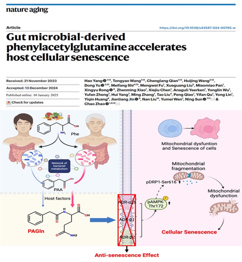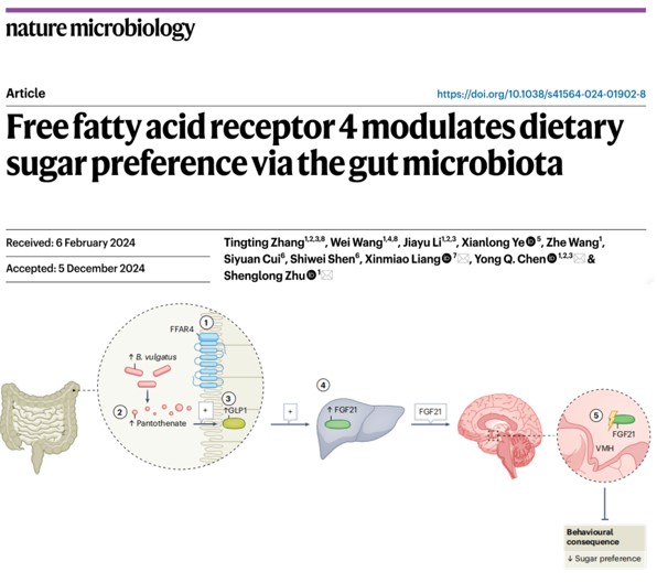 近期,在创新中心的支持下研究成果突出,创新中心马鑫教授团队在《Cell Metabolism》期刊上发表了题为“Targeting gut S. aureofaciens Tü117 serves as a new potential therapeutic intervention for the prevention and treatment of hypertension”的研究性论文,该研究揭示了金色链霉菌α脂霉素轴导致高血压,补充植物乳酸菌可显著改善临床高血压症状,该研究为改善高血压症状提供了新思路;创新中心孙宁教授团队在《Nature Aging》期刊上发表了题为“Gut microbial-derived phenylacetylglutamine accelerates host cellular senescence”的研究性论文,该研究揭示了肠道菌群来源代谢物苯乙酰谷氨酰胺加速宿主细胞衰老,阻断肾上腺素能受体以及衰老细胞裂解疗法在延缓苯乙酰谷氨酰胺诱导的宿主细胞衰老上的可行性,该研究为对抗衰老提供了新的思路和解决策略;创新中心朱升龙副教授/陈永泉教授团队在《Nature Microbiology》期刊上发表了题为“Free fatty acid receptor4 modulates dietary sugar preference via the gut microbiota”的研究性论文,该研究揭示了游离脂肪酸受体4(Ffar4)通过肠道微生物群调节膳食糖偏好,Ffar4组织特异性激动剂的开发可能是糖尿病预防的另一种方法;创新中心申延琴教授团队在《Brain Behavior and Immunity》期刊上发表了题为“Gut microbiota promote the propagation of pathologicα-syn from gut to brain in gut-originated Parkinson's disease model of mice”的研究性论文,该研究揭示了肠道菌群在肠起源帕金森病中的动态变化规律,首次证实肠道菌群(尤其是Dubosiella)是推动α-syn病理从肠到脑传播的关键因素。除此之外,创新中心庞庆丰教授、吴郁教授等团队发表高质量研究成果近10篇,授权发明专利多项。