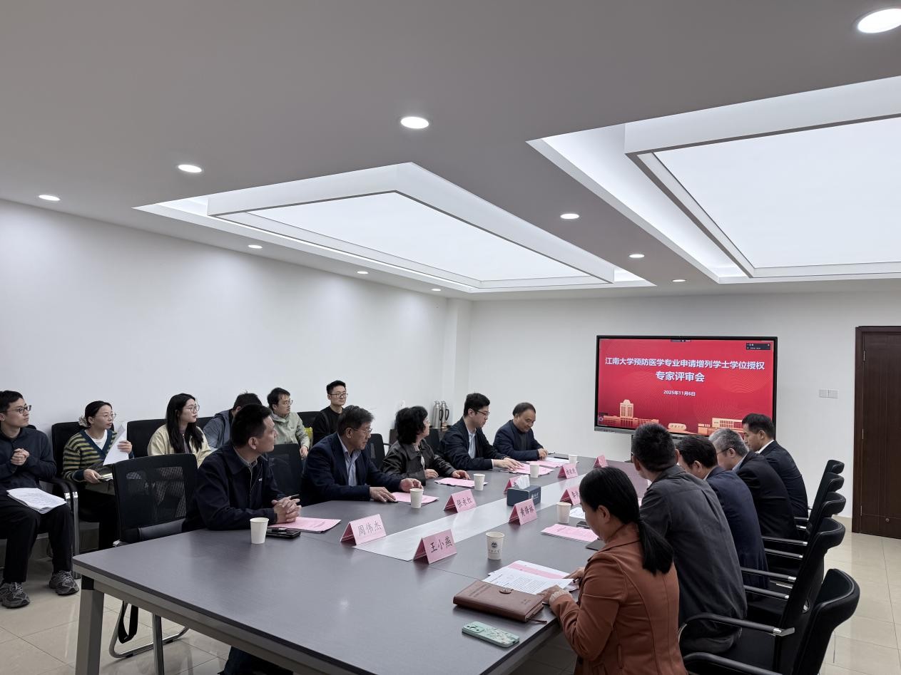 2025年11月6日上午,江南大学“预防医学专业申请增列学士学位授权专家评审会”在蠡湖校区行政楼B306会议室以线上线下结合的方式组织召开。江南大学党委常委、副校长李兆丰,教务处副处长黄锋林、王小燕与会指导。