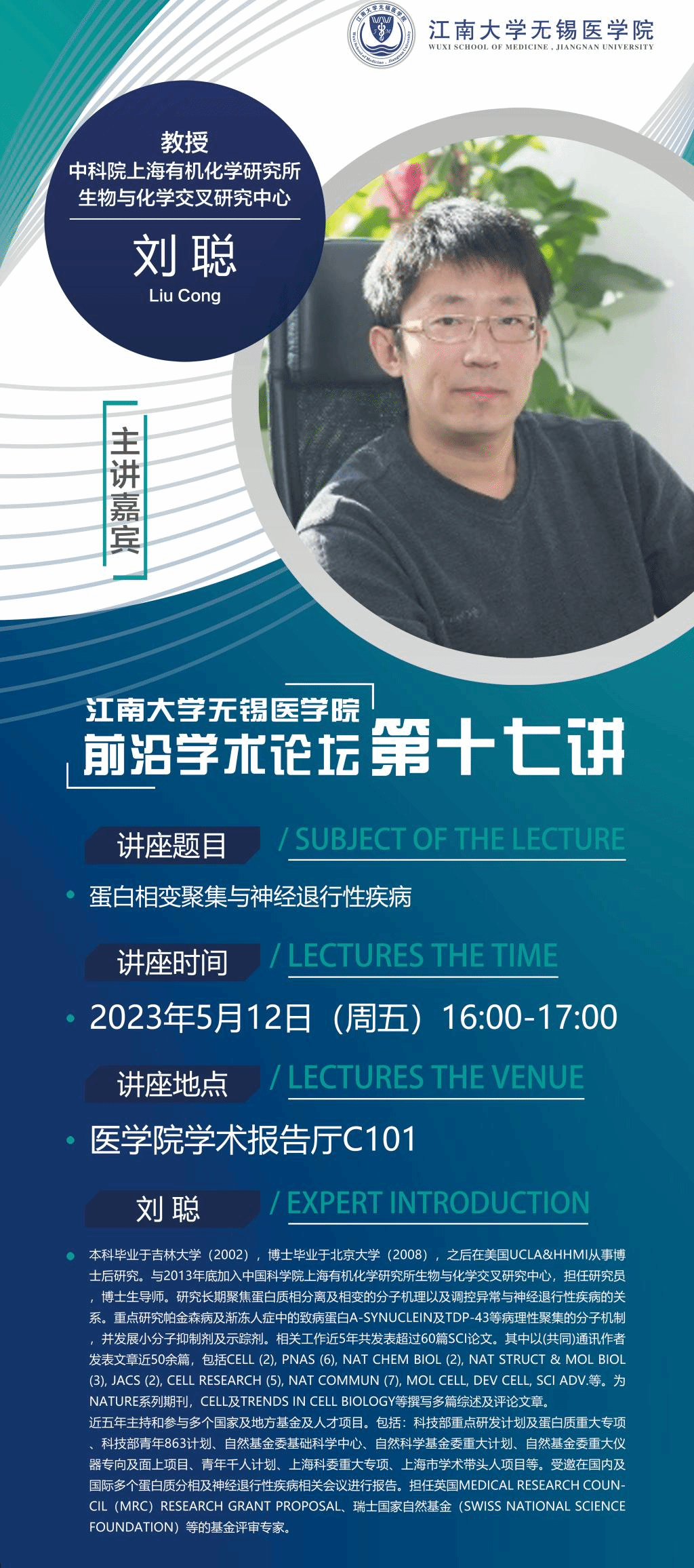 5月12日九博国际-九博体育 前沿学术论坛第十七讲 刘聪教授——蛋白相变聚集与神经退行性疾病