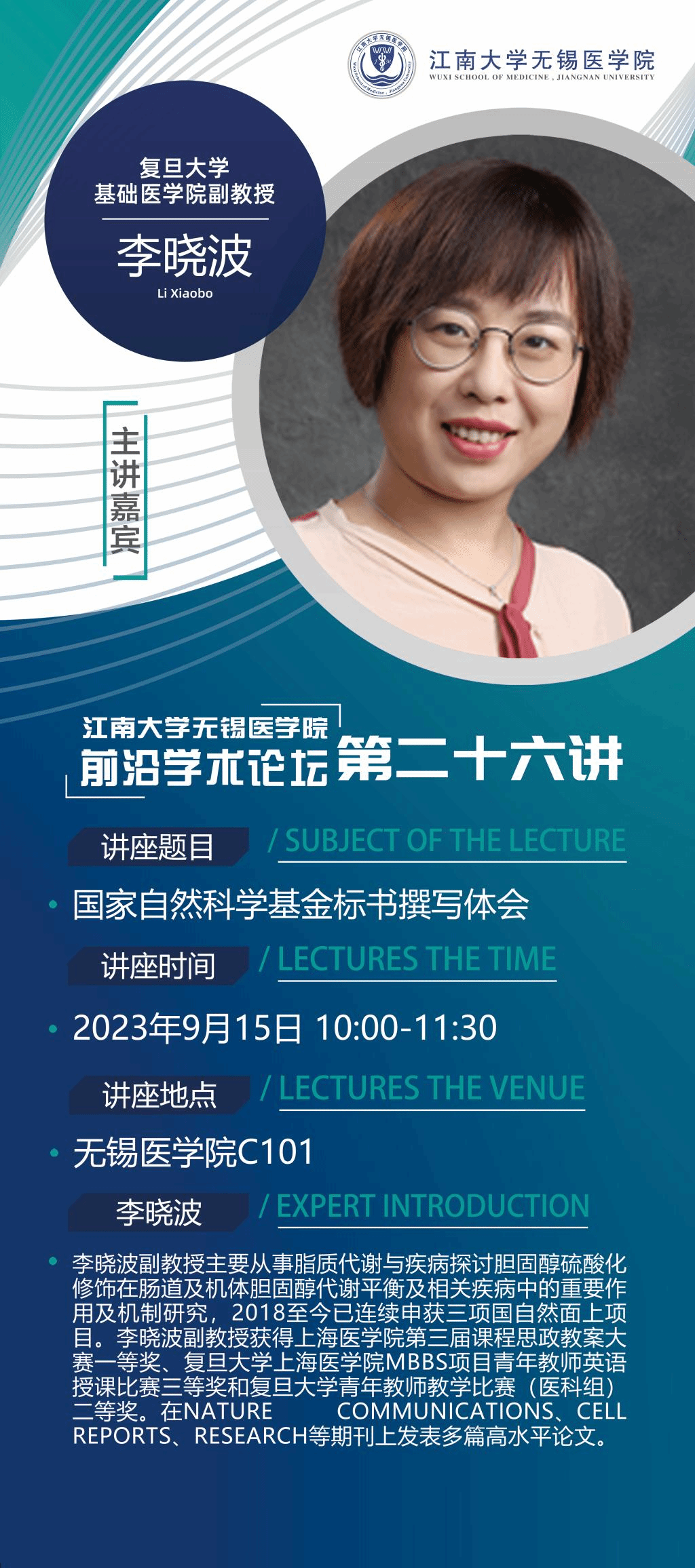 主讲嘉宾:李晓波副教授 复旦大学基础九博国际 副教授