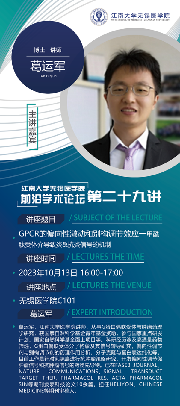 10月13日九博国际-九博体育 前沿学术论坛第二十九讲 葛运军教授——GPCR的偏向性激动和别构调节效应—甲酰肽受体介导致炎&抗炎信号的机制