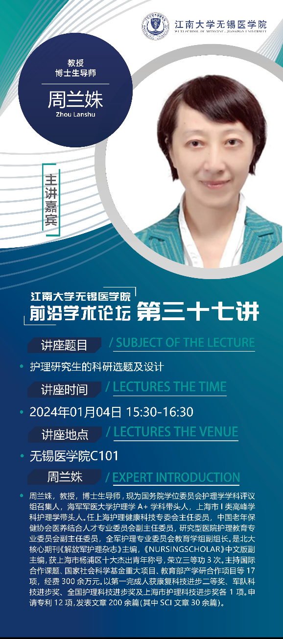 1月4日九博国际-九博体育 前沿学术论坛第三十七讲 周兰姝教授——护理研究生的科研选题及设计