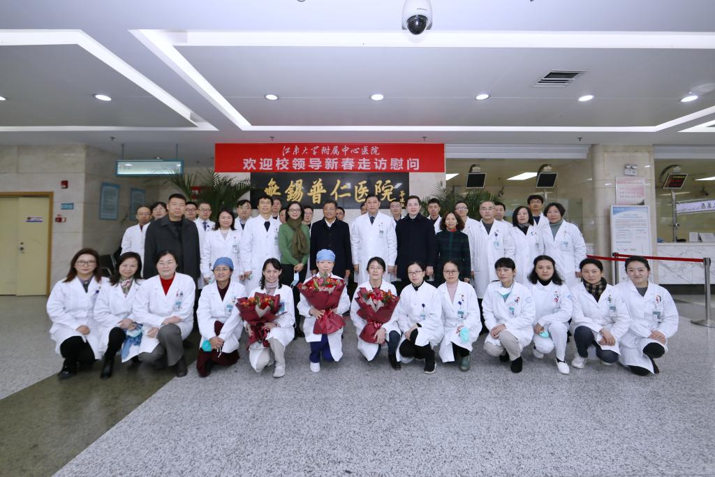 1月18日上午,江南大学校长、党委副书记陈卫,副校长张影陆、马鑫,率领江南大学校长办公室主任张梁、工会常务副主席黄壮霞等一行,来到附属中心医院进行新春走访慰问,向奋战在医疗救治一线的医务人员致以新春的问候和节日的祝福。附属中心医院全体院领导和相关职能科室负责人,以及一线医务人员代表参加慰问。
