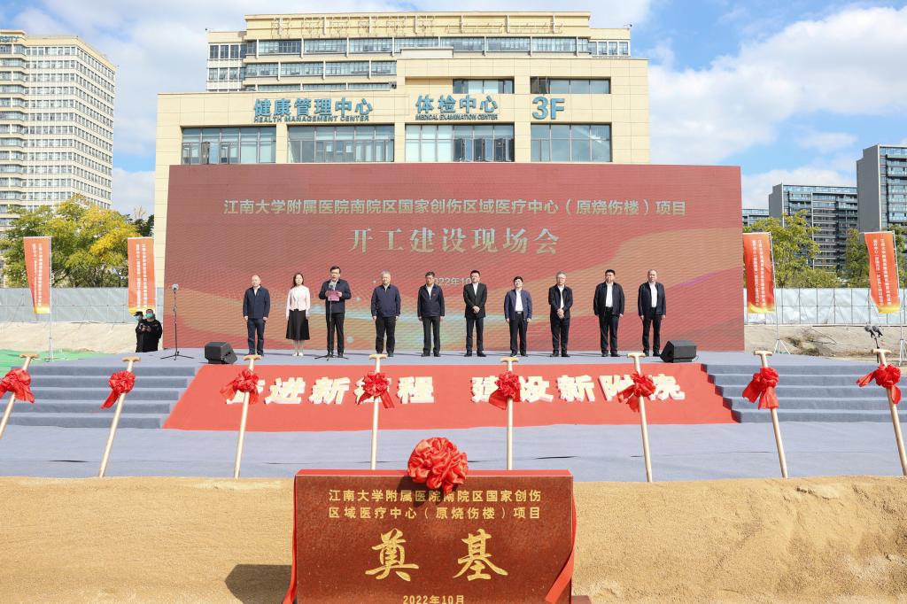 10月20日,江南大学附属医院举行南院区国家创伤区域医疗中心(原烧伤楼)项目开工建设现场会,为奋力推动国家创伤区域医疗中心创建工作吹响了“冲锋集结号”。