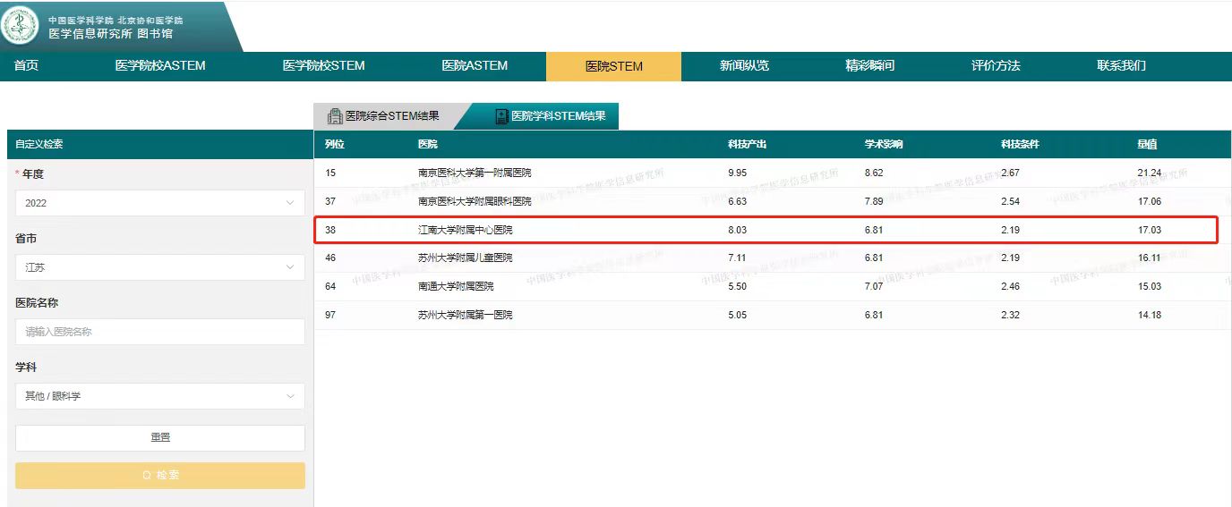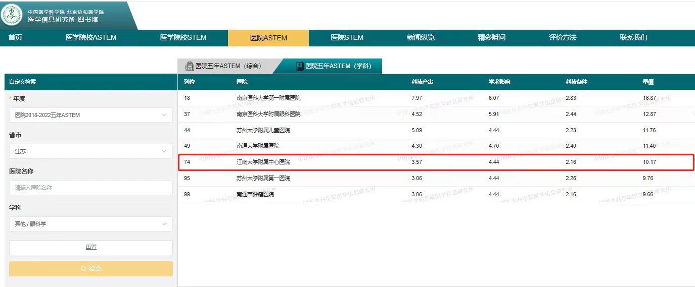 校/中国医院科技量值(STEM)暨2018—2022五年总科技量值(ASTEM)在北京发布。无锡市第二人民医院(江南大学附属中心医院)泌尿外科学居2022年度中国医院学科科技量值第57位和五年总科技量值综合分值排名71位,该排名位居全省第四,全市第一。眼科学居2022年度中国医院学科科技量值居全省第三,全市第一;五年总科技量值综合分值排名居全省第五,全市第一。