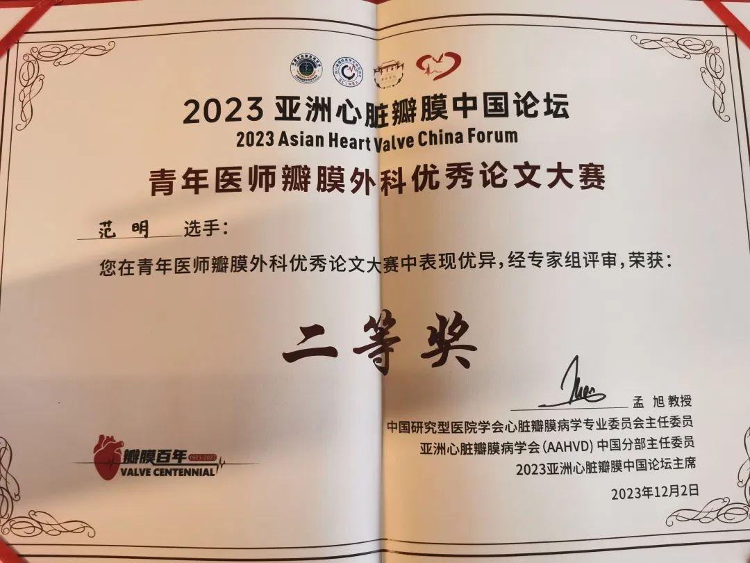 近日,由中国研究型医院学会心脏瓣膜病学专业委员会主办的2023亚洲心脏瓣膜中国论坛在成都顺利召开。论坛设立了全国青年医师瓣膜外科优秀论文大赛,江南大学附属儿童医院(无锡市儿童医院)心胸外科范明医师撰写的论文荣获《青年医师瓣膜外科优秀论文大赛》二等奖。