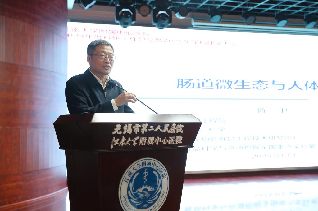 最后,江南大学校长、党委副书记、中国工程院院士陈卫教授以“肠道微生态与人体健康”为主题,进行了精彩的专题授课。他从自己的科研生涯成就和工作经历出发,分享介绍了前沿科研理念、实践经验、当前成果等,以丰富的科研经历拓宽了医院科研人员的视野,激发了大家的创新思维。