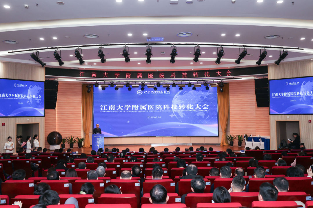 为进一步培育和发展医学新质生产力,有效提升临床科研成果转化效能,赋能医院高质量发展, 3月1日,江南大学附属医院科技转化大会在多功能厅召开。江南大学、市委组织部、市卫生健康委、市科技局、市市场监管局、惠山区、马山国家生命科学园等领导受邀参会,四川大学华西医院、嘉兴市第一人民医院、江大国家大学科技园领导专家出席会议并进行科技成果转化经验分享。院领导、班组长以上管理干部、医院各类博士参加会议。
